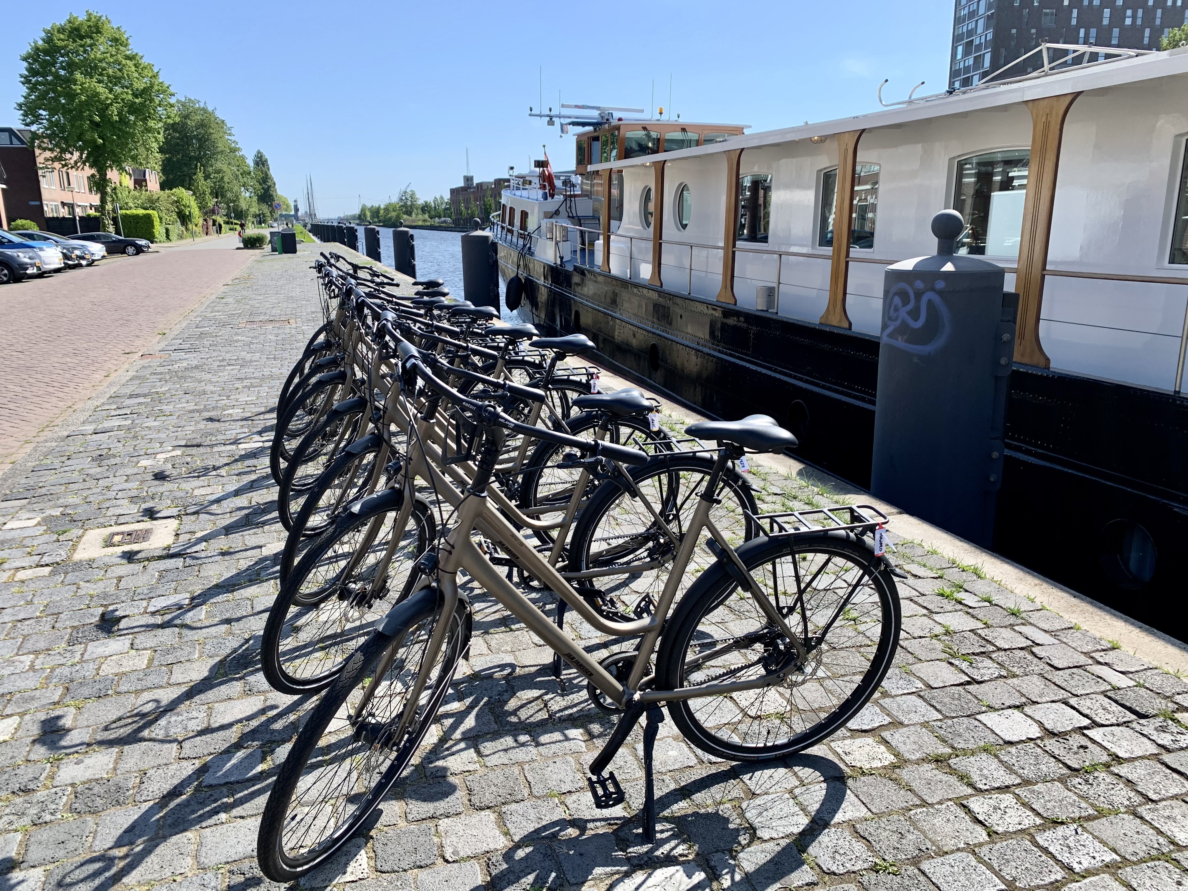 Frühstück, während Merlijn den Küstekanal befährt, einen 70 Kilometer langen Verbindungskanal zwischen Ems und Weser. Die Radtour führt zum Teil entlang des Kanals und zum Teil landeinwärts. Vorbei an gezeichneten Klappbrücken, die die Ufer miteinander verbinden, und blumengeschmückten Häusern am Ufer. Der Tag endet in Oldenburg, berühmt für die erste große Fußgängerzone Deutschlands, im Bundesland Niedersachsen gelegen.