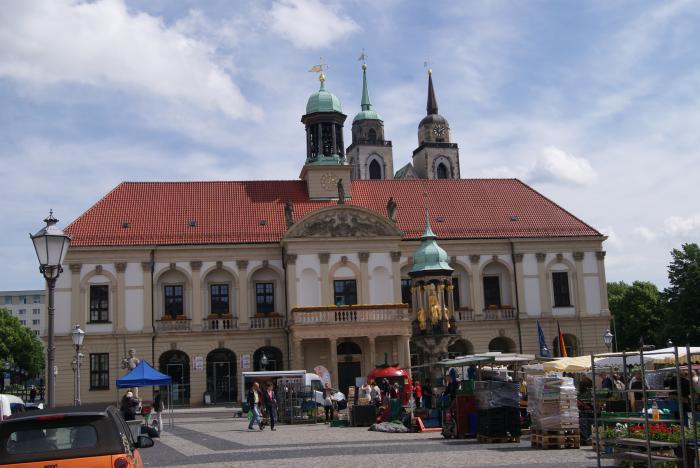 - Old Market Square met het standbeeld van de Gouden Ruiter, een vergulde bronzen kopie van het eerste vrijstaande ruiterstandbeeld ten noorden van de Alpen, dat midden in het stadscentrum staat. Het werd gemaakt in het jaar 1240 en stelt vermoedelijk keizer Otto I voor.