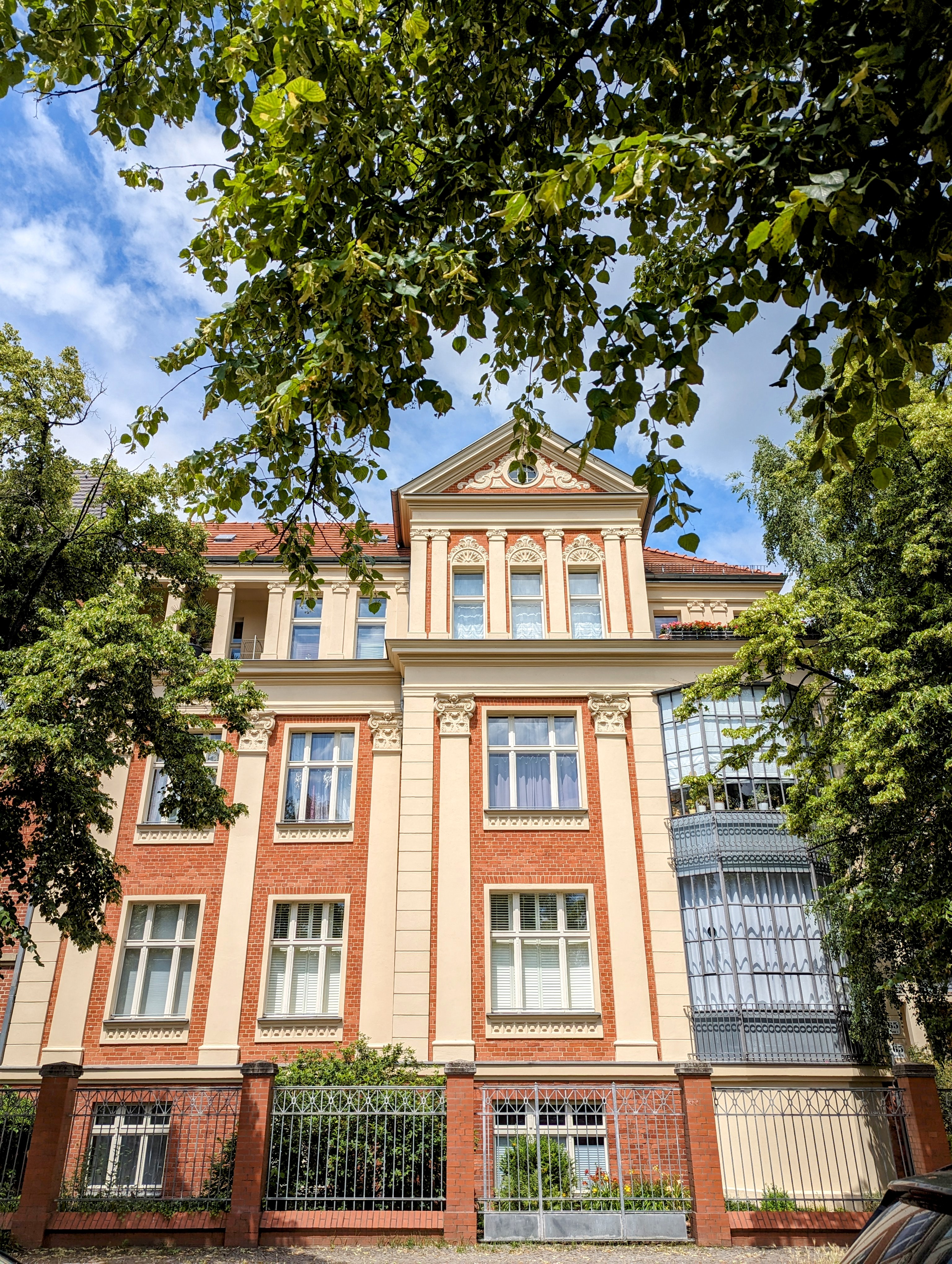 Na dit bezoek gaan we fietsen. We rijden langs uitgestrekte laaglanden en zien enkele kleine “Märkische” dorpen (dorpen in de typische Maartse stijl met vakwerkhuizen). Al snel naderen we Paretz, waar koningin Louise haar zomerverblijf doorbracht, zowel in het plaatselijke kasteel als in het Paretz Park.